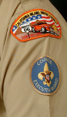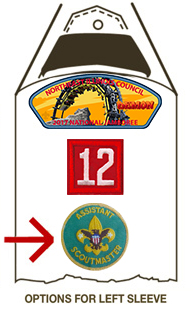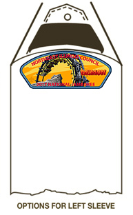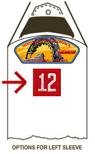 The top of the left sleeve houses the Council Strip Patch or CSP. The Council Patch should be flushed against the shoulder seam. The Council Patch is obtained through your local Council and cannot be customized to each troop.