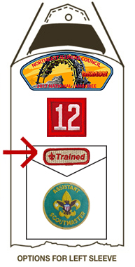Scouts who take an Official Scouting America Training Course receive the Trained Patch. This patch is placed centered below the Left Sleeve Pocket.