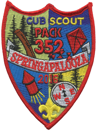 Many Packs get custom patches for events like Pinewood Derby, Space Derby and Raingutter Regatta.
